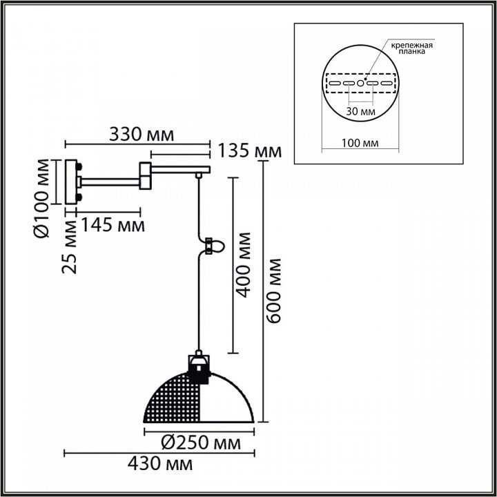 Форма плафона: Полукруг