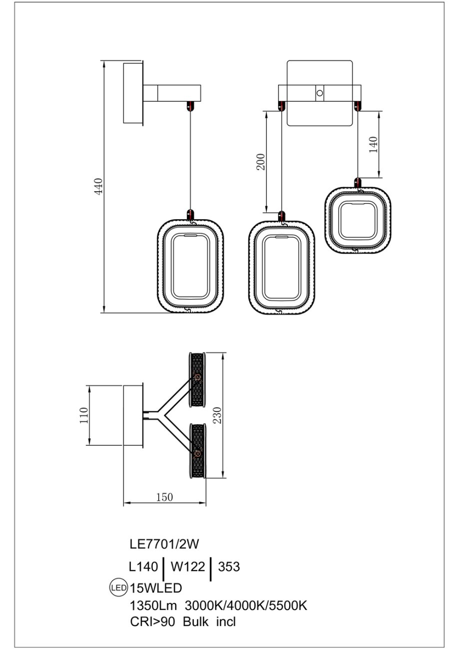 Артикул: LE7701/2W Grey/Gold