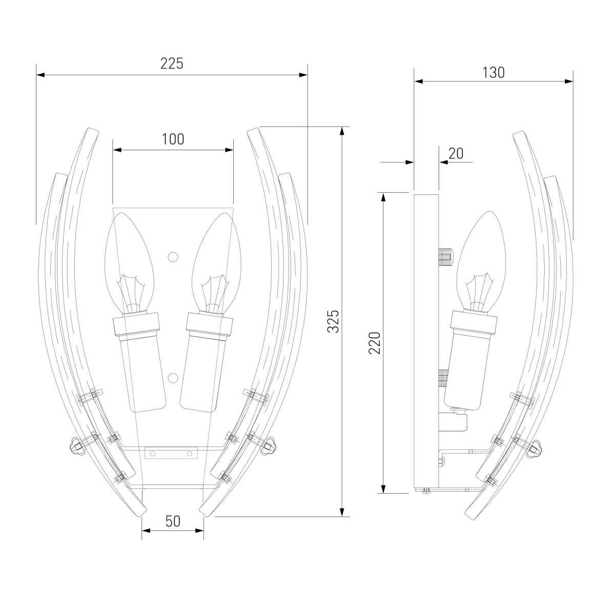 Общая форма для Бра и Настенные светильников с любым количеством рожков: Общий плафон / абажур