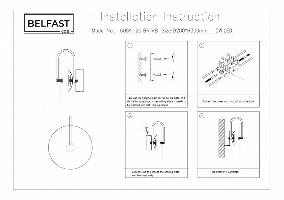 Станьте первым, кто оставит отзыв о товаре Настенный светильник Belfast Ravenhill 6084-20 BR MB.