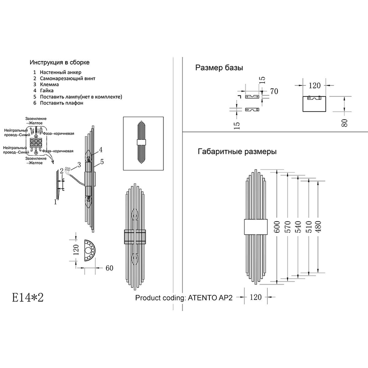 Общая форма для Бра и Настенные светильников с любым количеством рожков: Общий плафон / абажур