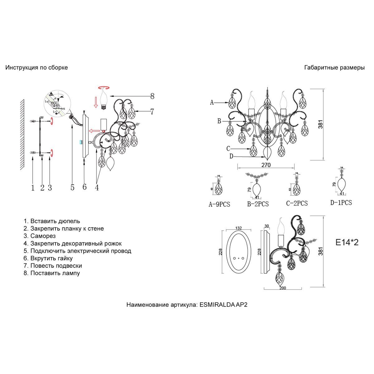 Тип светильника: настенный светильник