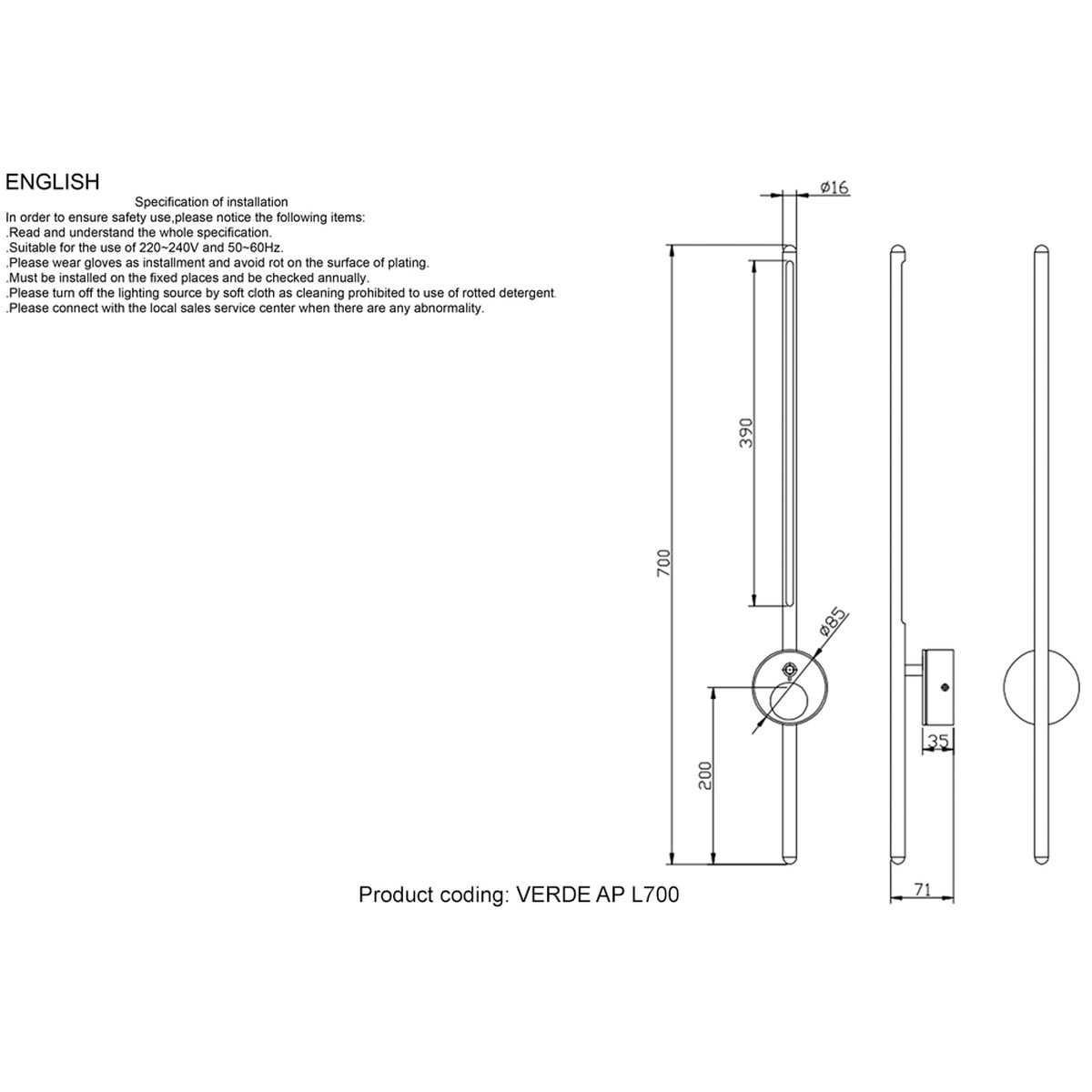 Артикул: VERDE AP L700 GOLD