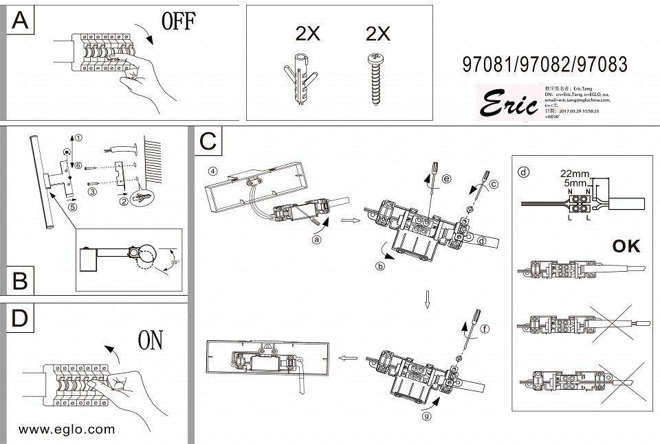 Станьте первым, кто оставит отзыв о товаре Подсветка для зеркал Eglo Vadumi 97083.