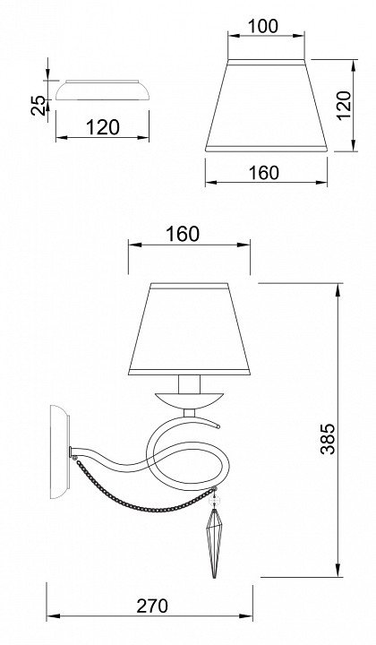 Общая форма для Бра и Настенные светильников с любым количеством рожков: Общий плафон / абажур