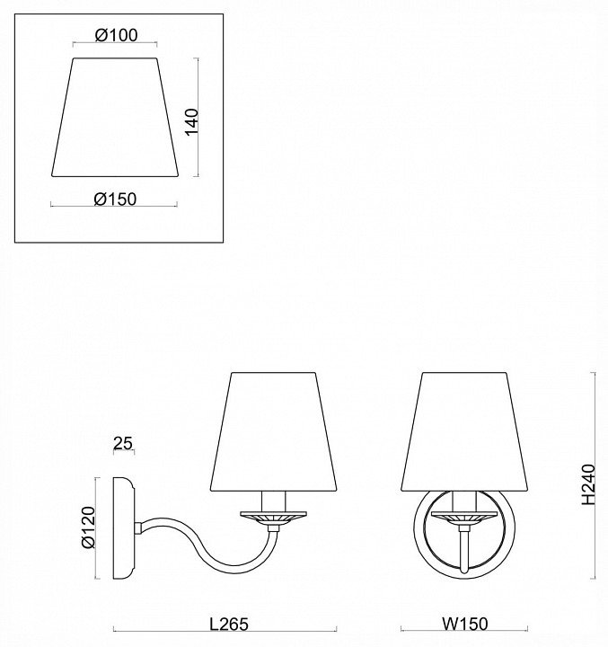 Общая форма для Бра и Настенные светильников с любым количеством рожков: Общий плафон / абажур