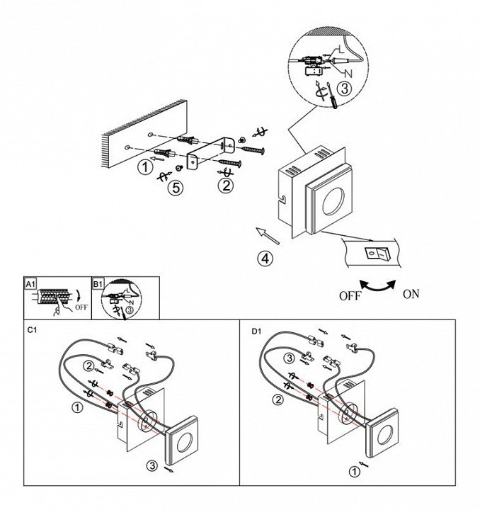 Наличие выключателя, диммера или пульта ДУ: выключатель на корпусе, выключатель