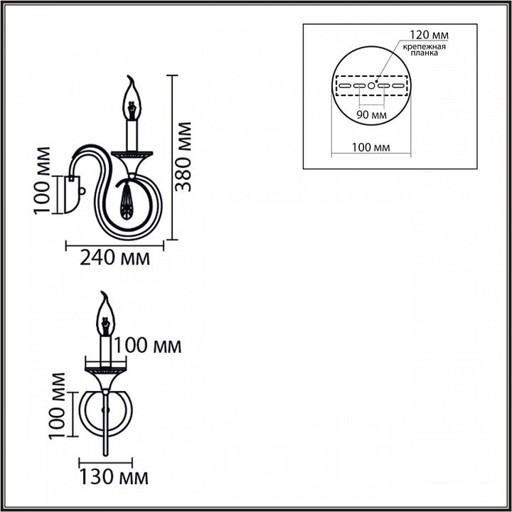 Общая форма для Бра и Настенные светильников с любым количеством рожков: Без плафонов / свечи