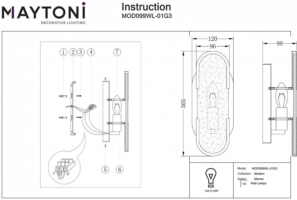 Станьте первым, кто оставит отзыв о товаре Бра Maytoni Marmo MOD099WL-01G3.