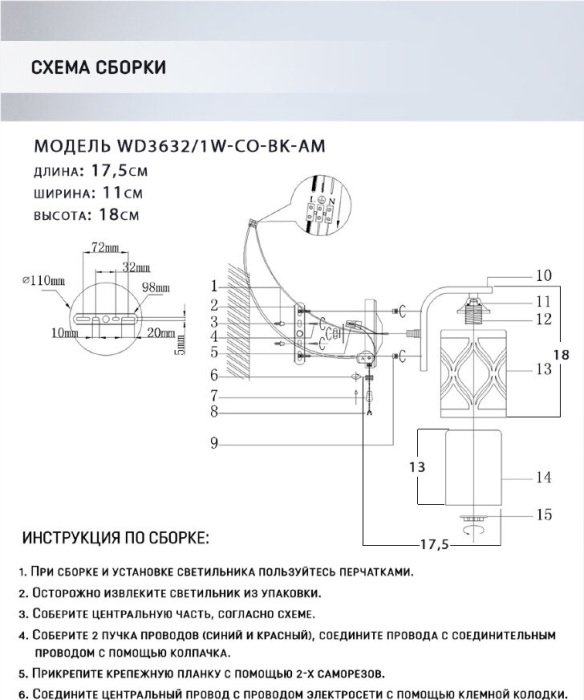 Тип светильника: бра