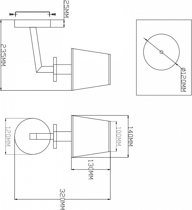 Общая форма для Бра и Настенные светильников с любым количеством рожков: Общий плафон / абажур