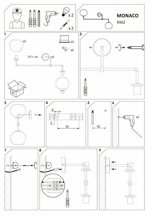 Главная Настенные светильники Бра Nowodvorski Monaco 9362