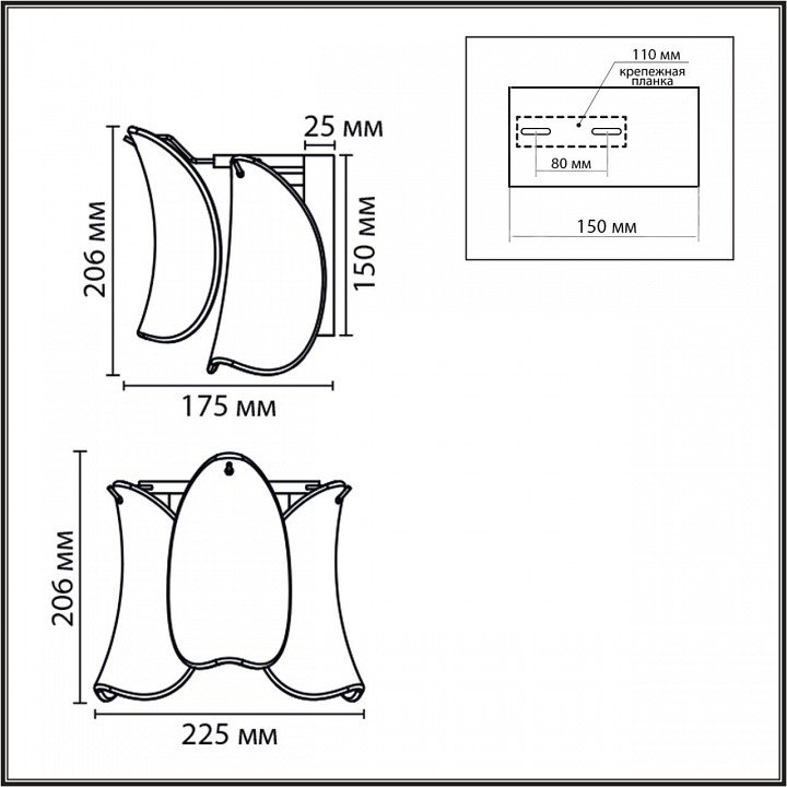 Общая форма для Бра и Настенные светильников с любым количеством рожков: Общий плафон / абажур