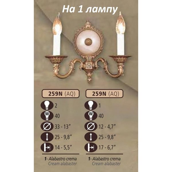 Главная Настенные светильники Бра Riperlamp 259N 259N/1 AQ CREAM ALABASTER