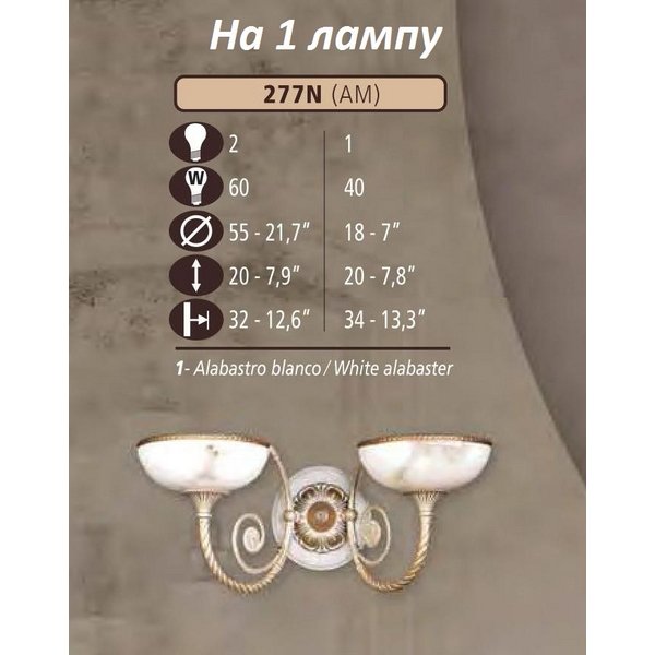 Главная Настенные светильники Бра Riperlamp 277N 277N/1 AM WHITE ALABASTER