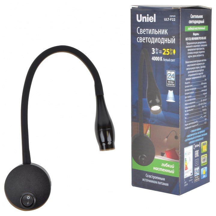 Главная Настенные светильники Бра (UL-00004240) Uniel ULT-F22-3W/4000K IP20 Black