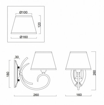 Общая форма для Бра и Настенные светильников с любым количеством рожков: Общий плафон / абажур
