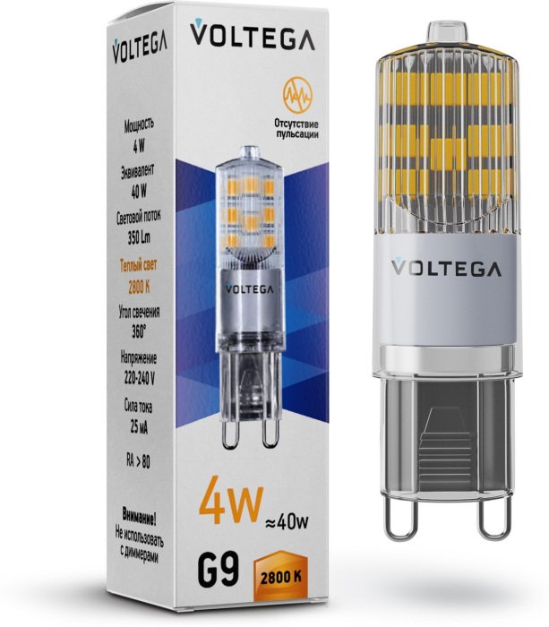 Главная Лампочки Лампа светодиодная Voltega G9 4W 2800К прозрачная VG9-K2G9warm4W 7124