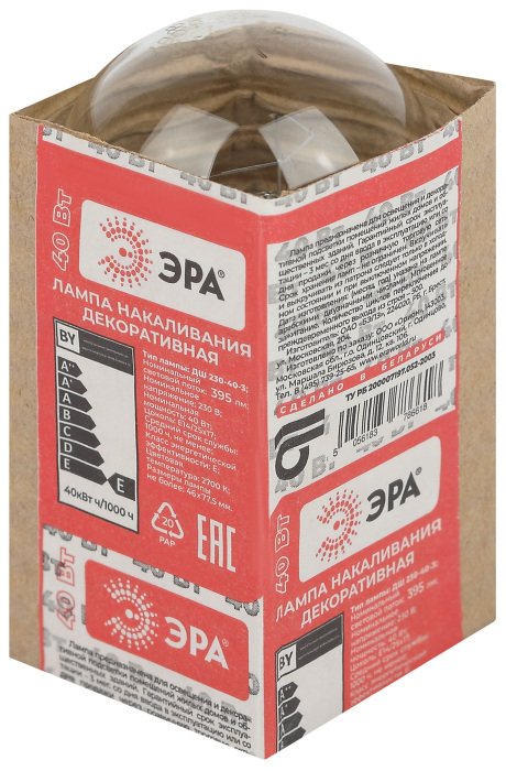 Станьте первым, кто оставит отзыв о товаре Лампа накаливания ЭРА E14 40W 2700K прозрачная ДШ 40-230-Е14 (гофра).