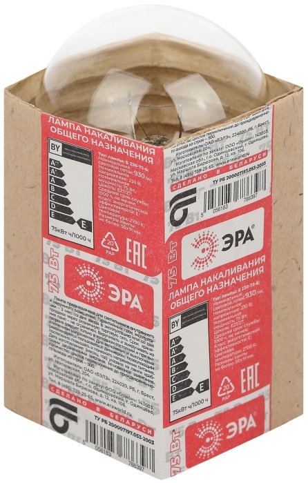 Станьте первым, кто оставит отзыв о товаре Лампа накаливания ЭРА E27 75W 2700K прозрачная A50 75-230-E27 (гофра).