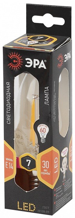 Станьте первым, кто оставит отзыв о товаре Лампа светодиодная филаментная ЭРА E14 7W 2700K прозрачная F-LED B35-7W-827-E14.