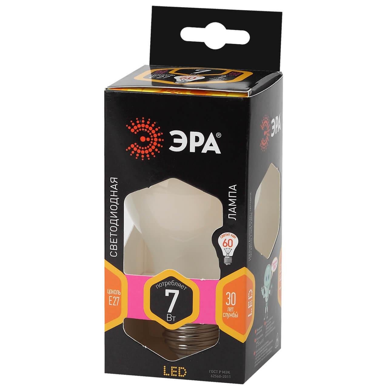 Лампа светодиодная филаментная ЭРА E27 7W 2700K матовая F-LED A60-7W-827-E27 frost