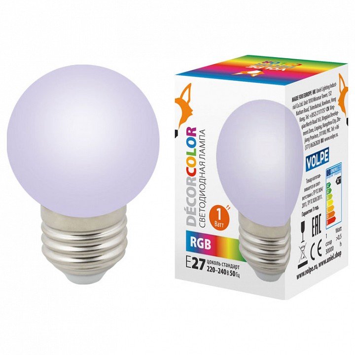 Станьте первым, кто оставит отзыв о товаре Лампа декоративная светодиодная (UL-00005808) Volpe E27 1W RGB LED-G45-1W/RGB/E27/FR/С.