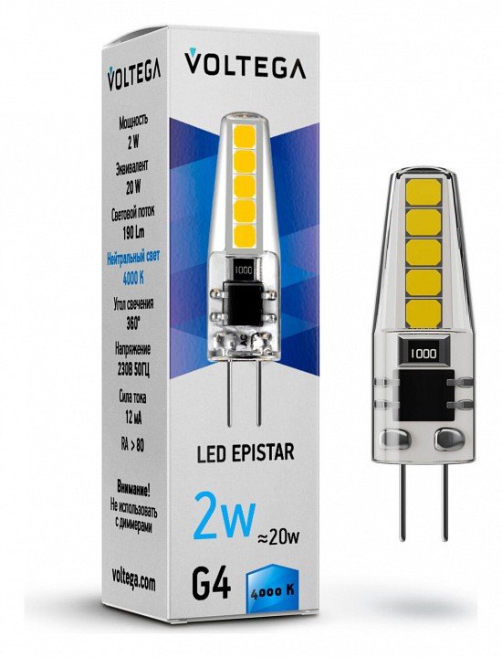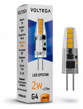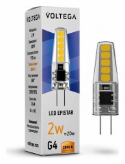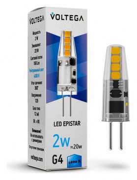 Главная Лампочки Лампа светодиодная Voltega G4 2W 4000K прозрачная VG9-K1G4cold2W 7145
