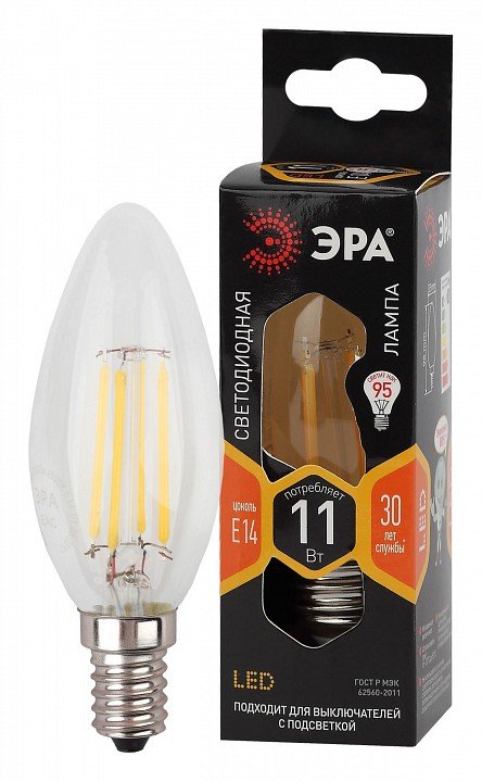 Лампа светодиодная филаментная ЭРА E14 11W 2700K прозрачная F-LED B35-11w-827-E14 Б0046985