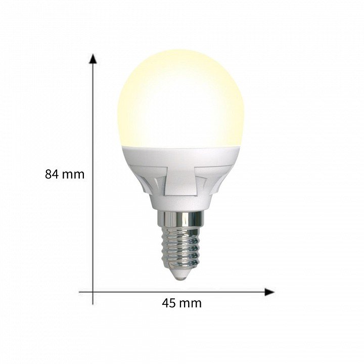 Лампа светодиодная Uniel Яркая Dim E14 7Вт 3000K LED-G45 7W/3000K/E14/FR/DIM PLP01WH картон