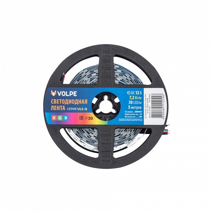 Лента светодиодная [5 м] Volpe ULS-Q210 5050-30LED/m-10mm-IP20-DC12V-7,2W/m-5M-RGB катушка в герметичной упаковке