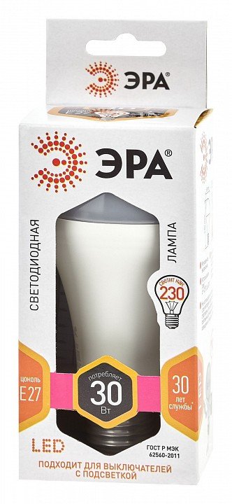 Главная Лампочки Лампа светодиодная ЭРА E27 30W 2700K матовая LED A65-30W-827-E27 Б0048015
