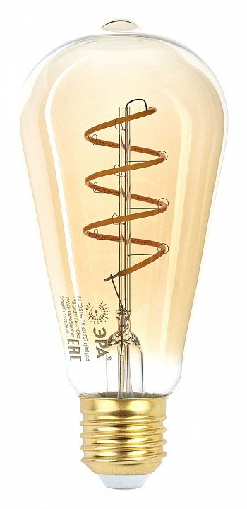 Лампа светодиодная филаментная ЭРА E27 7W 2400K прозрачная F-LED ST64-7W-824-E27 spiral gold Б0047665