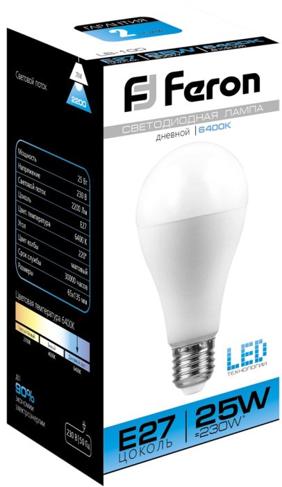 Станьте первым, кто оставит отзыв о товаре Лампа светодиодная Feron E27 25W 6400K Шар Матовая LB-100 25792.