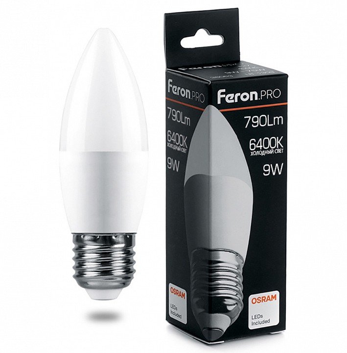 Главная Лампочки Лампа светодиодная Feron Pro E27 9W 6400K матовая LB-1309 38064