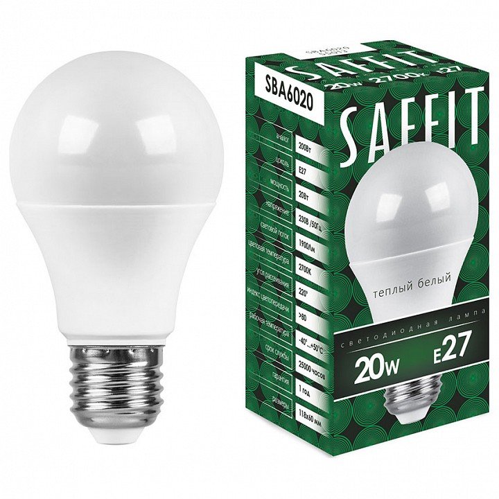Главная Лампочки Лампа светодиодная Feron Saffit SBA6020 E27 20Вт 2700K 55013