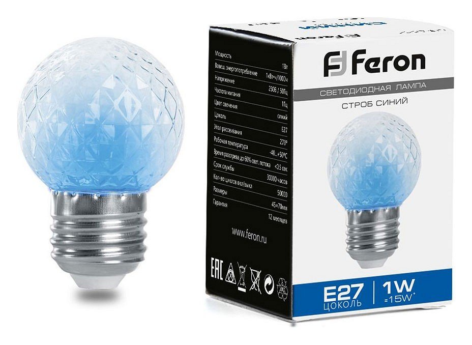 Станьте первым, кто оставит отзыв о товаре Лампа-строб светодиодная Feron E27 1W синий прозрачная LB-377 38211.