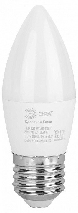 Лампа светодиодная ЭРА E27 8W 4000K матовая LED B35-8W-840-E27 R Б0050695