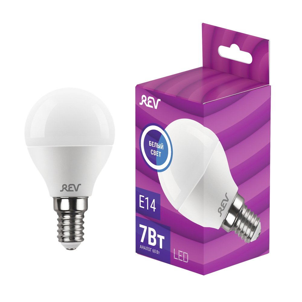 Главная Лампочки Лампа светодиодная REV G45 E14 7W нейтральный белый свет шар 32341 9
