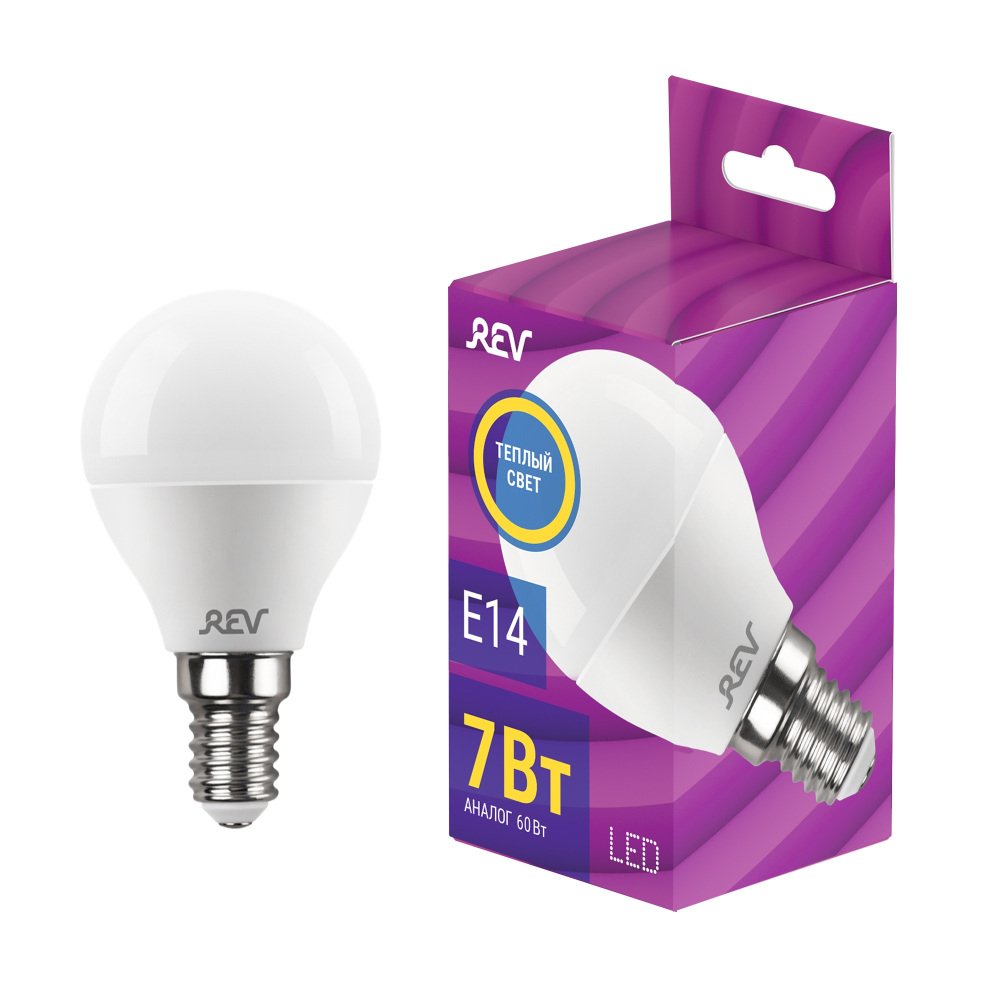 Главная Лампочки Лампа светодиодная REV G45 Е14 7W 2700K теплый свет шар 32340 2