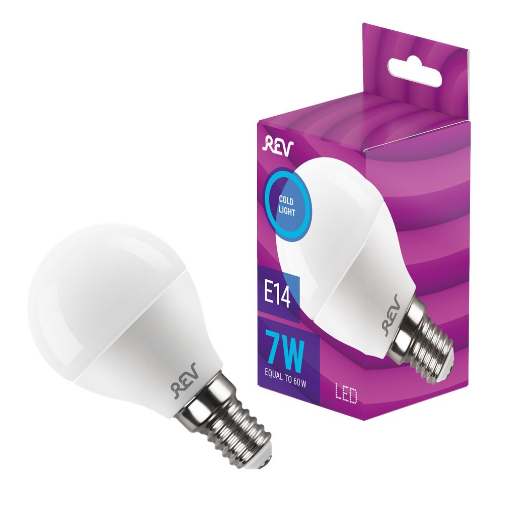 Главная Лампочки Лампа светодиодная REV G45 Е14 7W 6500K холодный белый свет шар 32503 1
