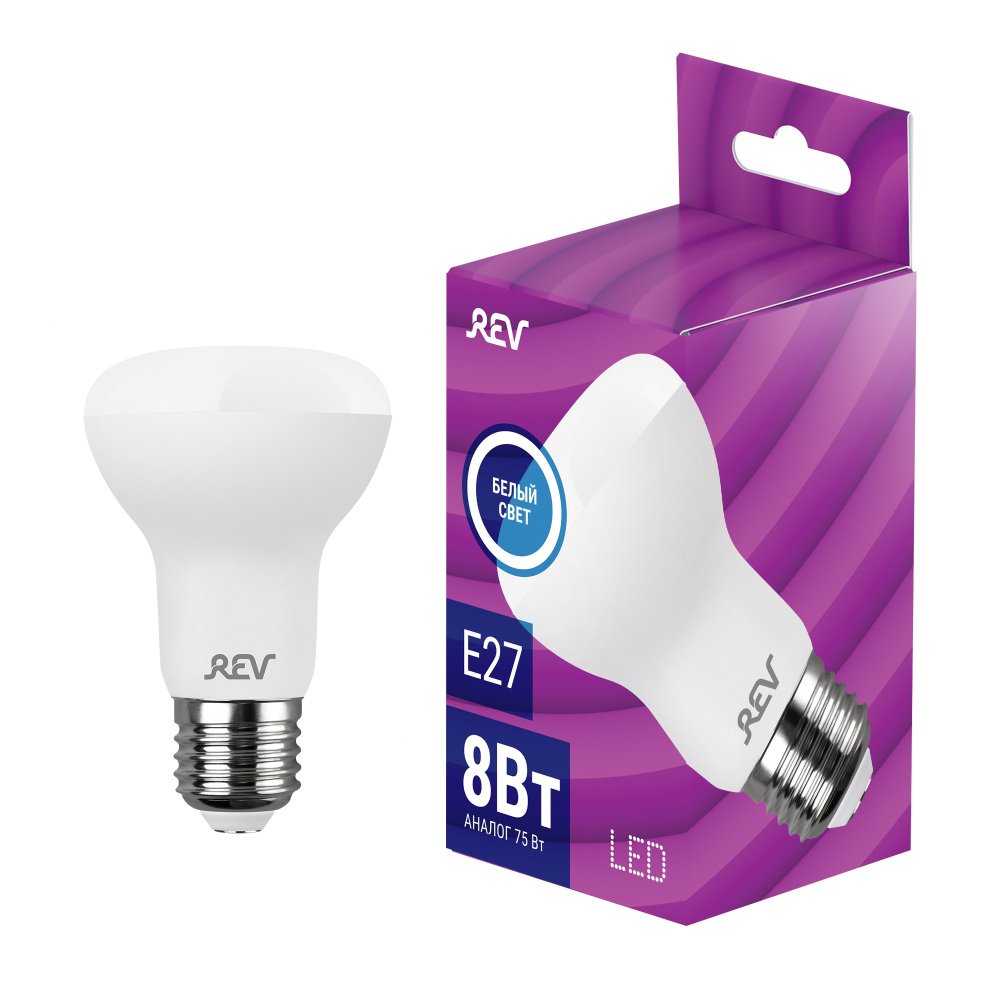 Главная Лампочки Лампа светодиодная REV R63 Е27 8W 4000K нейтральный белый свет рефлектор 32337 2