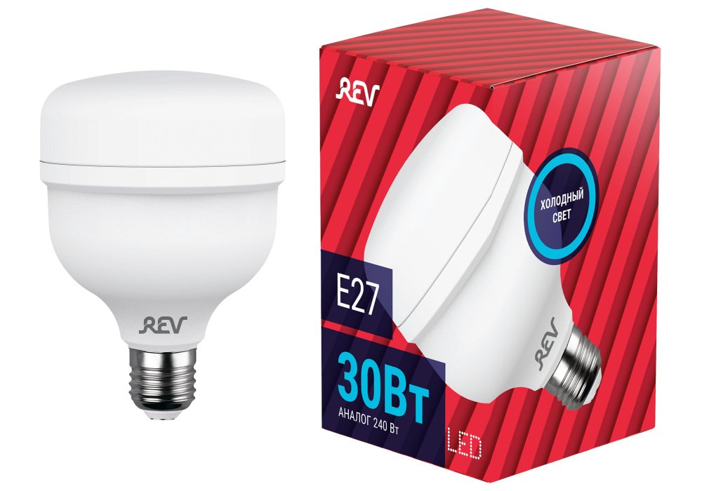 Главная Лампочки Лампа светодиодная REV T100 E27 30W 6500K PowerMax холодный белый свет цилиндр 32417 1