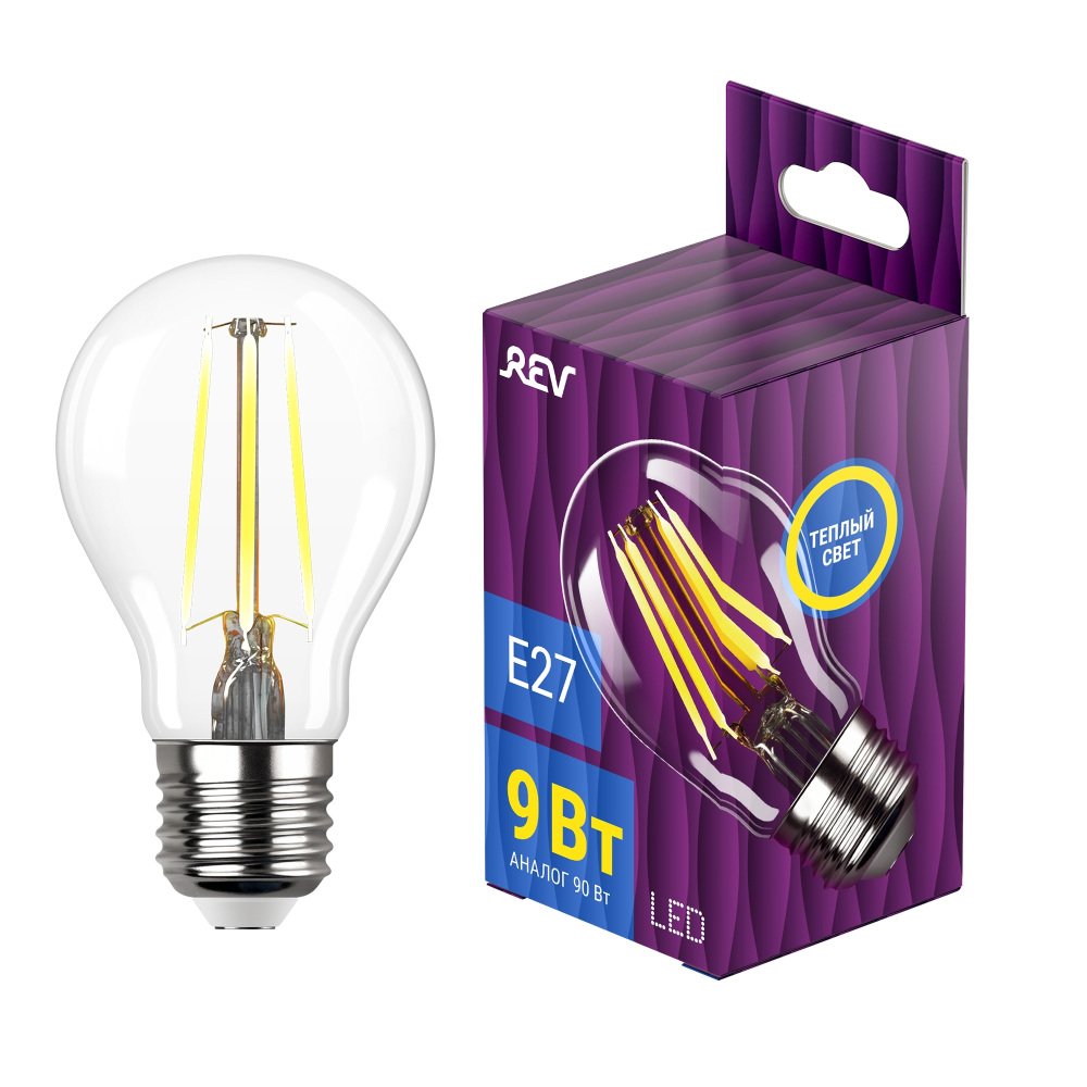 Лампа светодиодная филаментная REV Deco Premium A60 E27 9W теплый свет груша 32475 1