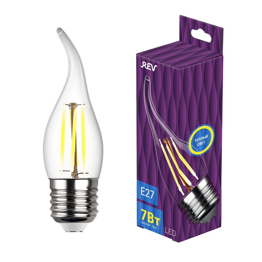 Главная Лампочки Лампа светодиодная филаментная REV FC37 E27 7W 2700K DECO Premium теплый свет свеча на ветру 32429 4