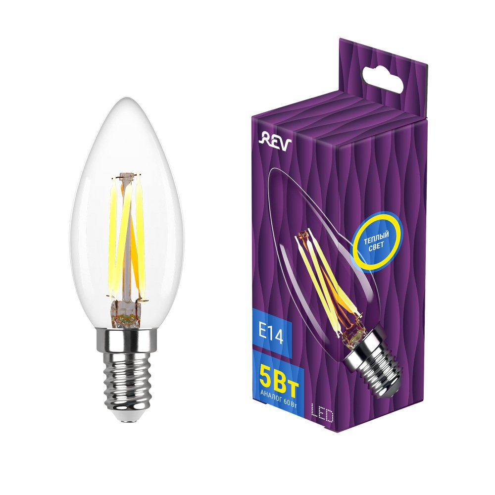 Станьте первым, кто оставит отзыв о товаре Лампа светодиодная филаментная REV С37 E14 5W 2700K DECO Premium теплый свет свеча 32359 4.