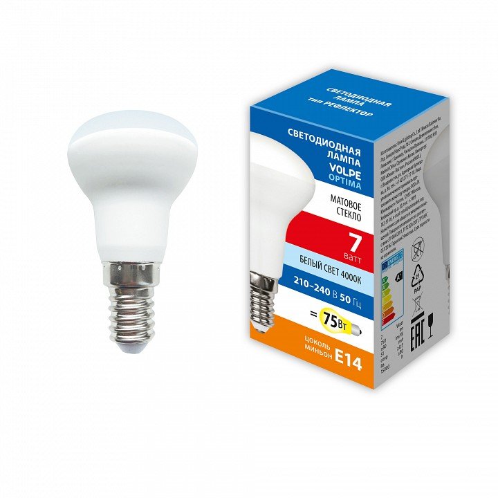 Главная Лампочки Лампа светодиодная Volpe E14 7W 4000K матовая LED-R50-7W/4000K/E14/FR/SLS UL-00008821