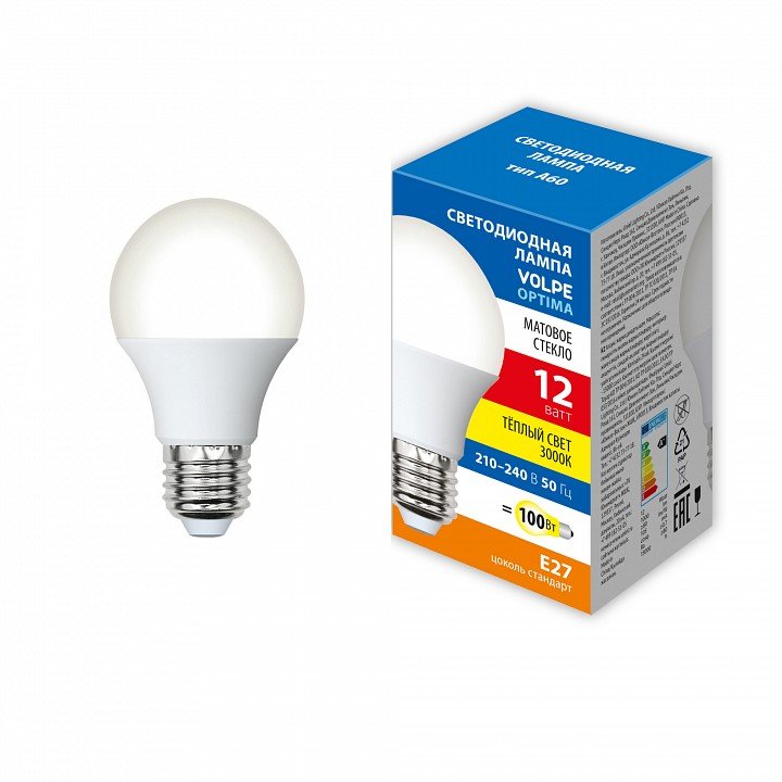 Главная Лампочки Лампа светодиодная Volpe E27 12W 3000K матовая LED-A60-12W/3000K/E27/FR/SLS UL-00008776