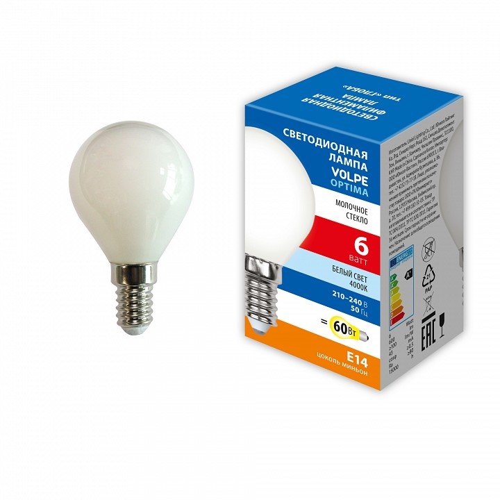 Главная Лампочки Лампа светодиодная филаментная Volpe E14 6W 4000K матовая LED-G45-6W/4000K/E14/FR/SLF UL-00008315