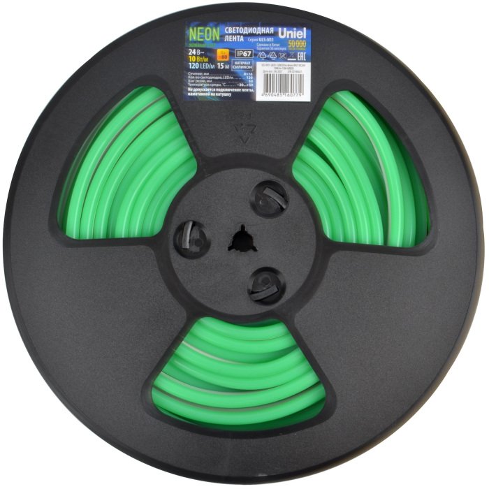 Станьте первым, кто оставит отзыв о товаре Светодиодная лента Uniel Neon ULS-N11-2835-120LED/m-8mm-IP67-DC24V-10W/m-15M-GREEN катушка в герметичной упаковке.